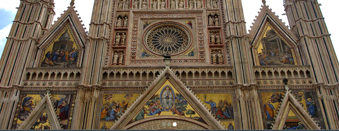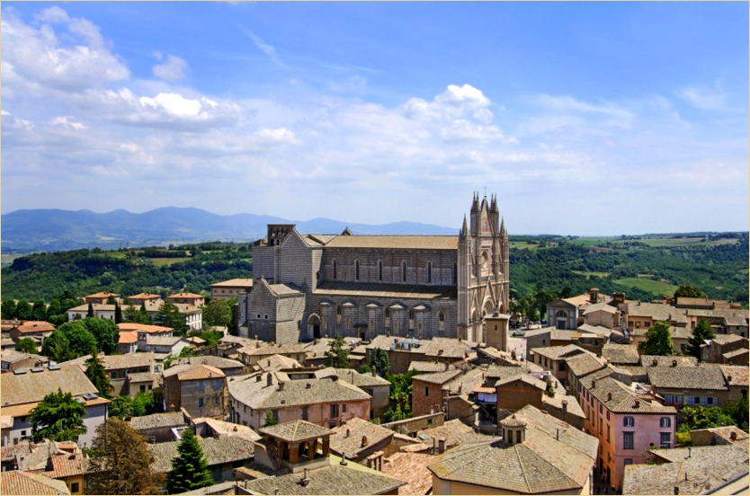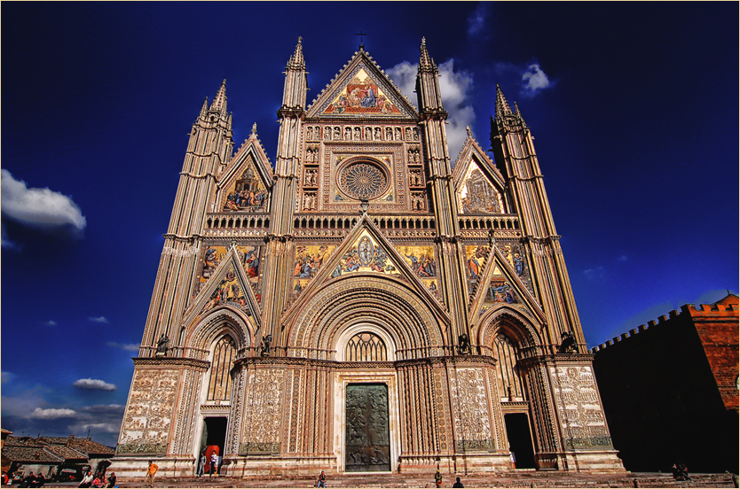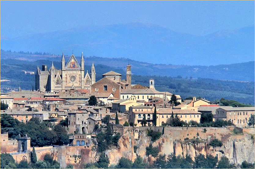 wir nach einer Stunde ORVIETO,dessen Symbol der Dom mit der Kappelle des Heiligen Brizio ist,ein Schmuckstueck der romanisch-gotischen Architektur.