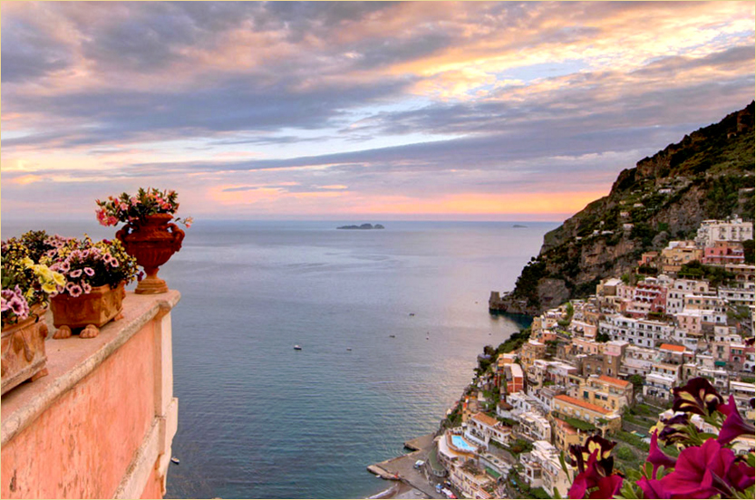 Erleben Sie diesen malerischen Ort, ein natuerliches Theaterbuehnenbild, ein Wasserfall bunter Haeuser, der vom Hang nach unten faellt, “der Edelstein der goettlichen Kueste”.